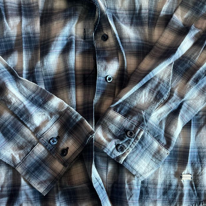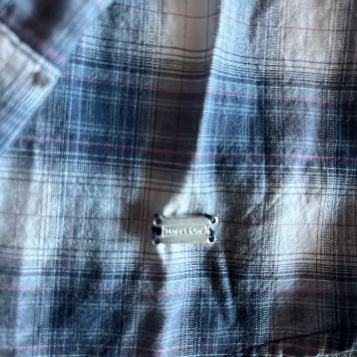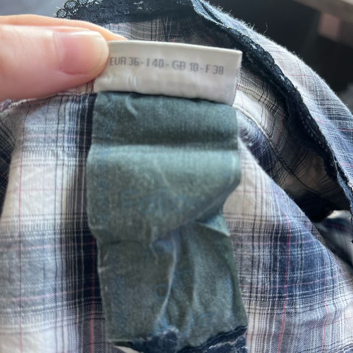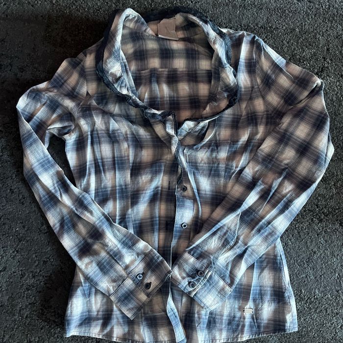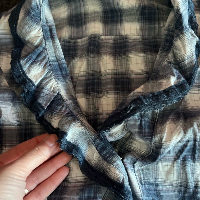 Chemise à carreaux dans les tons bleus, légère, dentelle, au niveau du cou et décolleté Très légère et agréable pour le printemps 🌷
