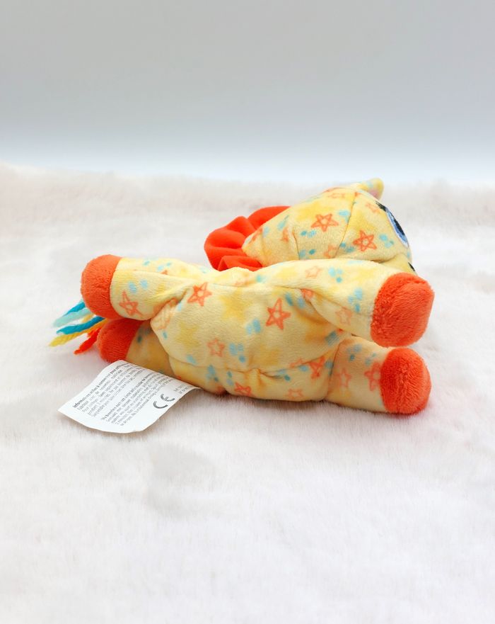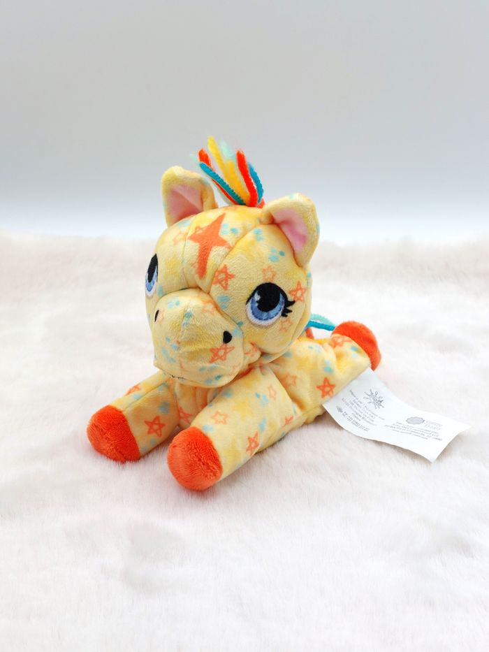 Petite peluche doudou licorne jaune orange Sunny days Splash toys étoiles 14 cm - billes corps - la queue et la crinière sont faits en fils de laine Très bon état - étiquette un peu effacée Envoi rapide Réf A12320 #minotresor #peluche #doudou #plush #knuffel #comforter