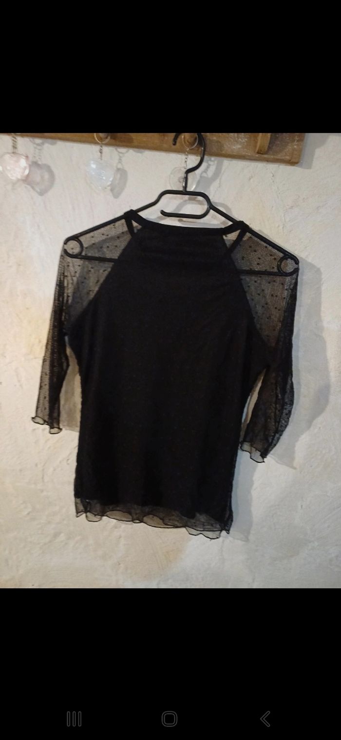 Joli petit haut avec épaules et manches transparentes, manches 3/4.