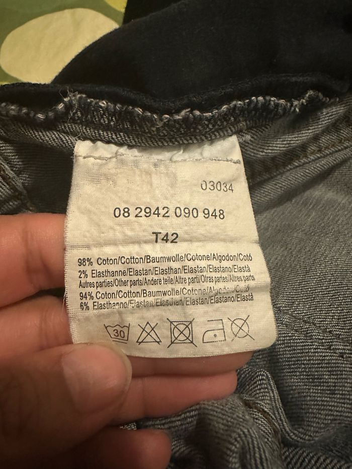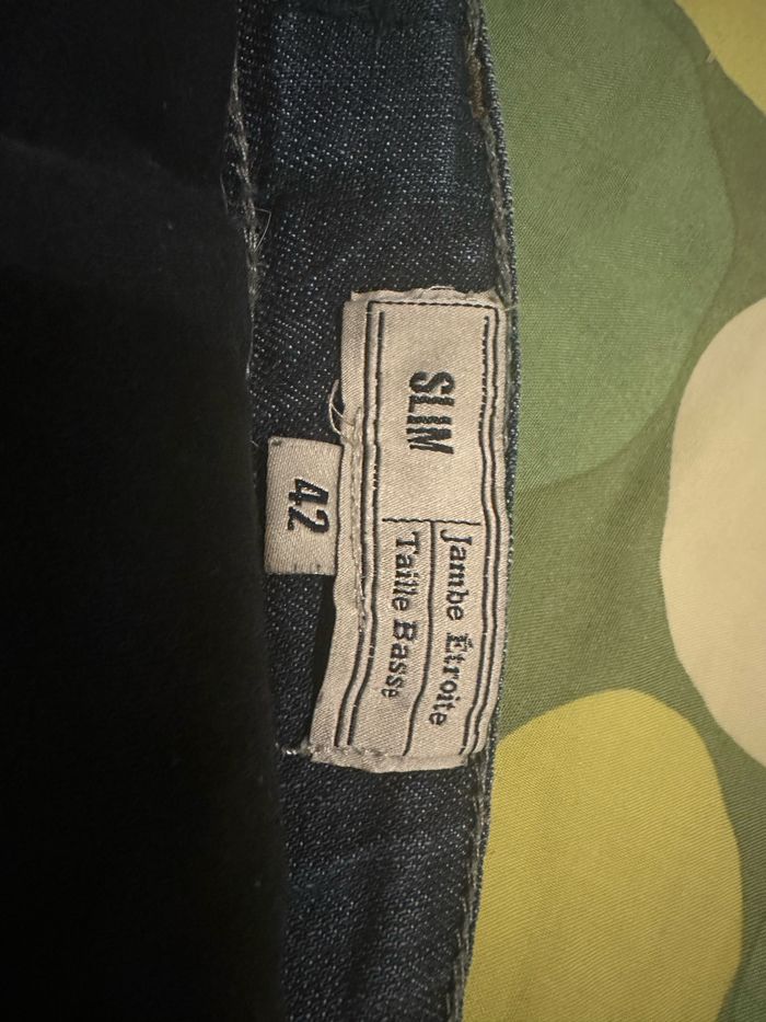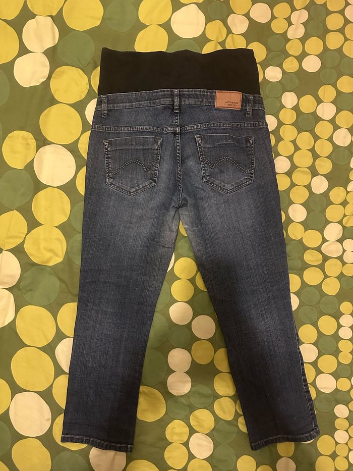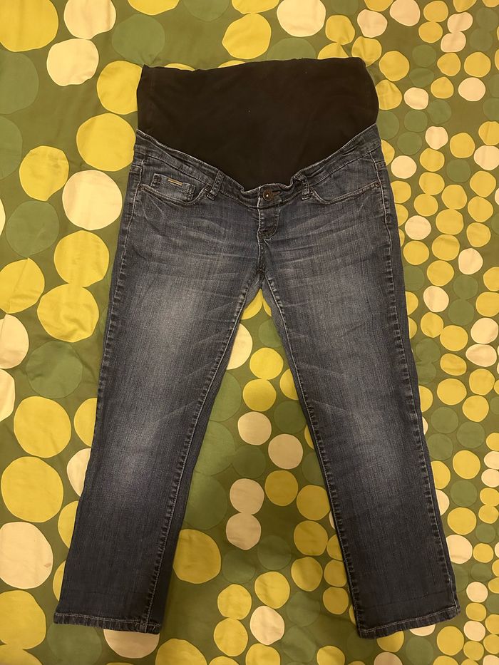 Pantacourt en jean de grossesse, taille basse, slim, jambes étroites de taille 42 en bon état.