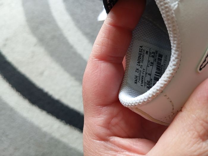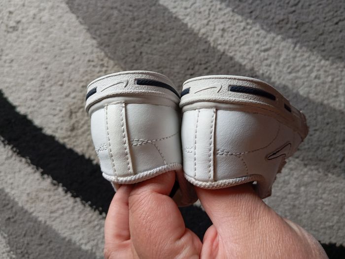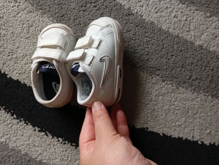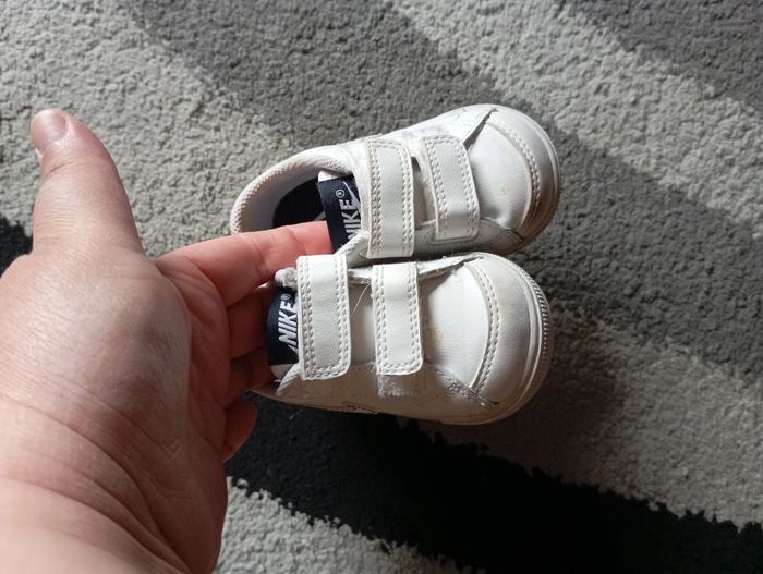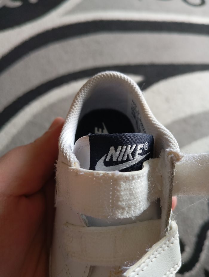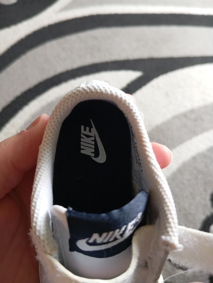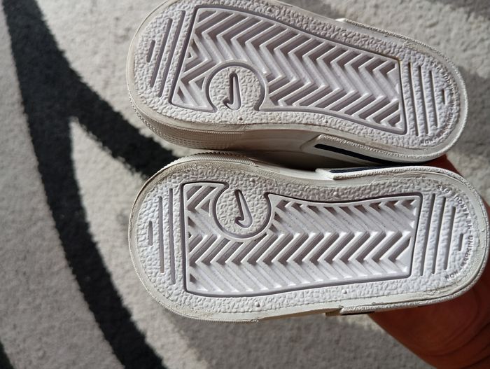 Paire de baskets Nike en très bon état et je pense qu'elles peuvent être mixtes. Pointure 19. Petites tâches voir dernière photo, faudra les nettoyer.