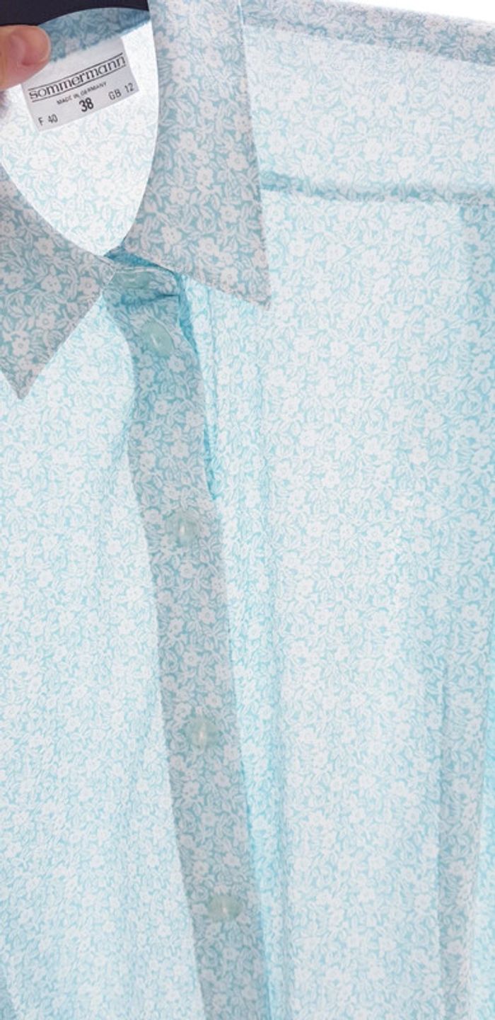 Blouse manches courtes bleu clair aux fleurs blanches, très légère et un peu transparente - T. 40 - TRÈS BON ÉTAT COMME NEUVE. #alupinechemisefemme40 #chemisemanchescourtesfemme40 #chemisefemme40 #blousemanchescourtesfemme40 #blousefemme40 #chemisiermanchescourtesfemme40 #chemisierfemme40 #chemisesommermannfemme40 #blousemanchescourtessommermannfemme40 #sommermannfemme40 #chemisevintagefemme40 #blousemanchescourtesvintagefemme40 #chemisiervintagefemme40 #vintagefemme40 #sommermannvintagefemme40 #sommermann #vintagefemme #vintage