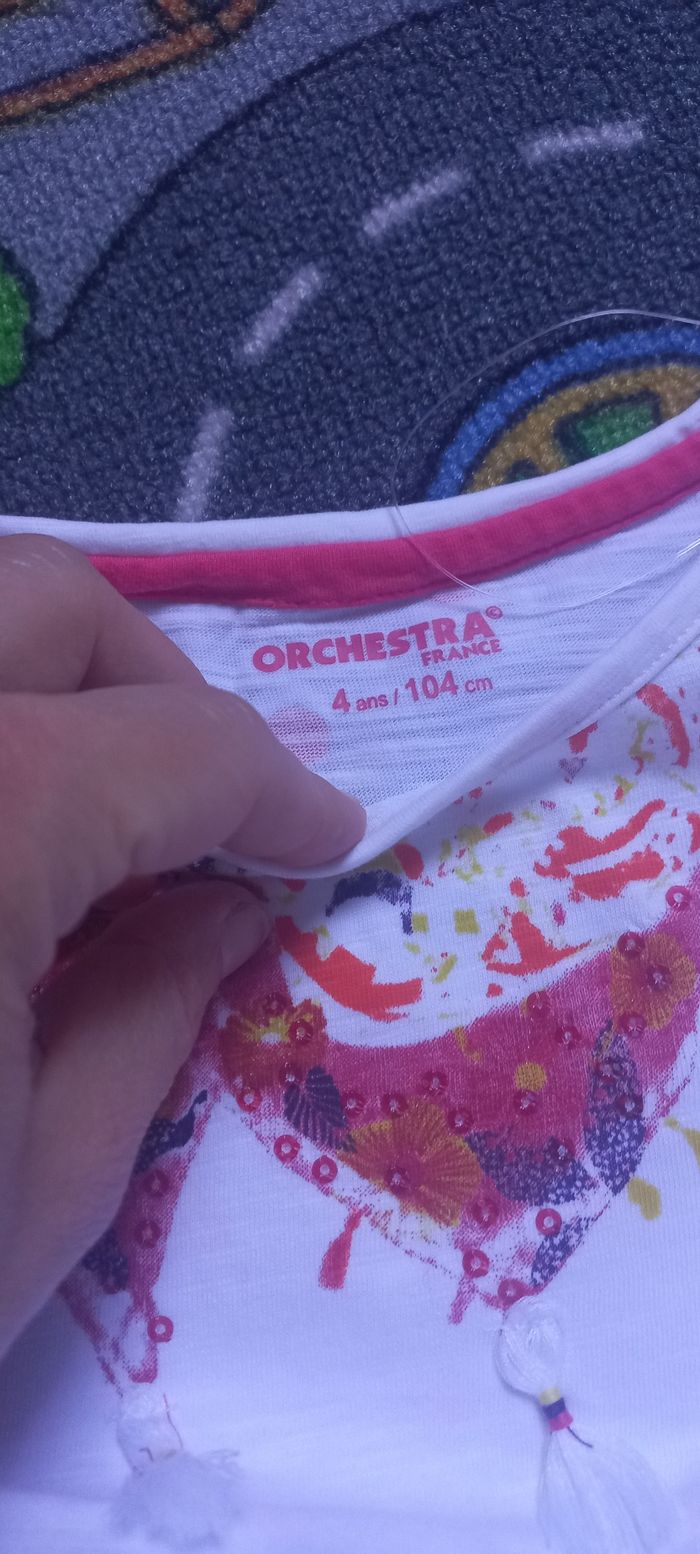 Neuf sans étiquette Elle a été arrachée Reste l'attache Petit trou d'origine au niveau du tee shirt