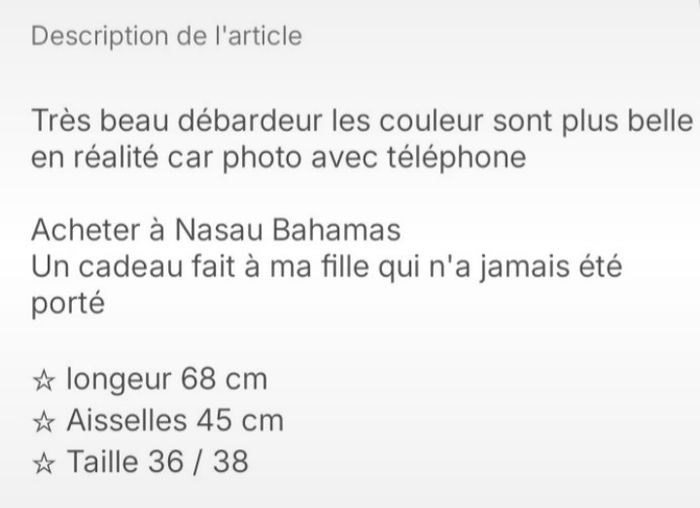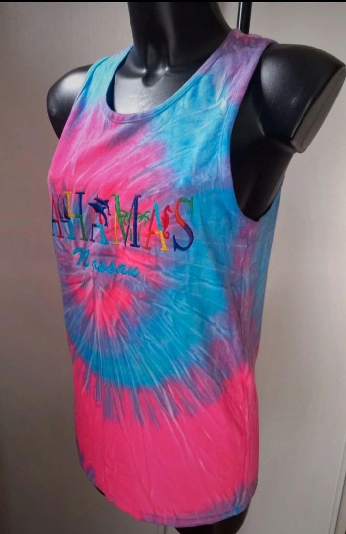 Très beau débardeur tout neuf Jamais porté Acheter au Bahamas. Description sur la dernière photo. Envoie soigné avec mondial relay ou Chronopost N'hésitez pas à regarder mes autres offres Réduction sur lot Merci de votre visite .