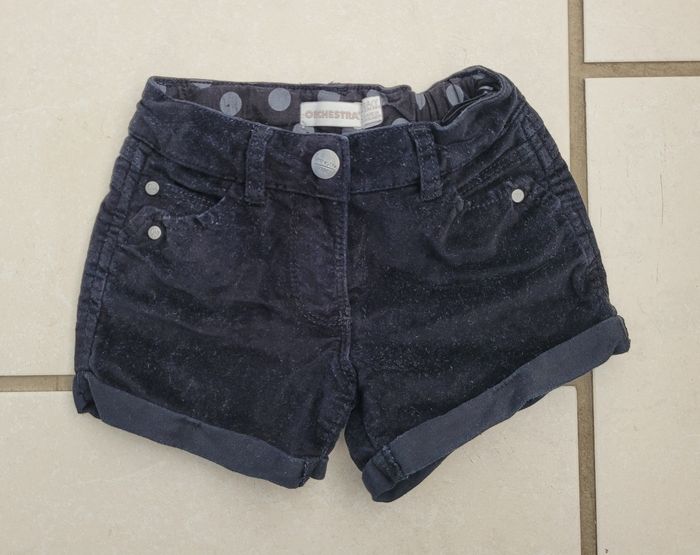 Short en velours, de couleur noir, de la marque Orchestra, taille 2 ans (92 cm), en très bon état. Article lavé pour la vente.