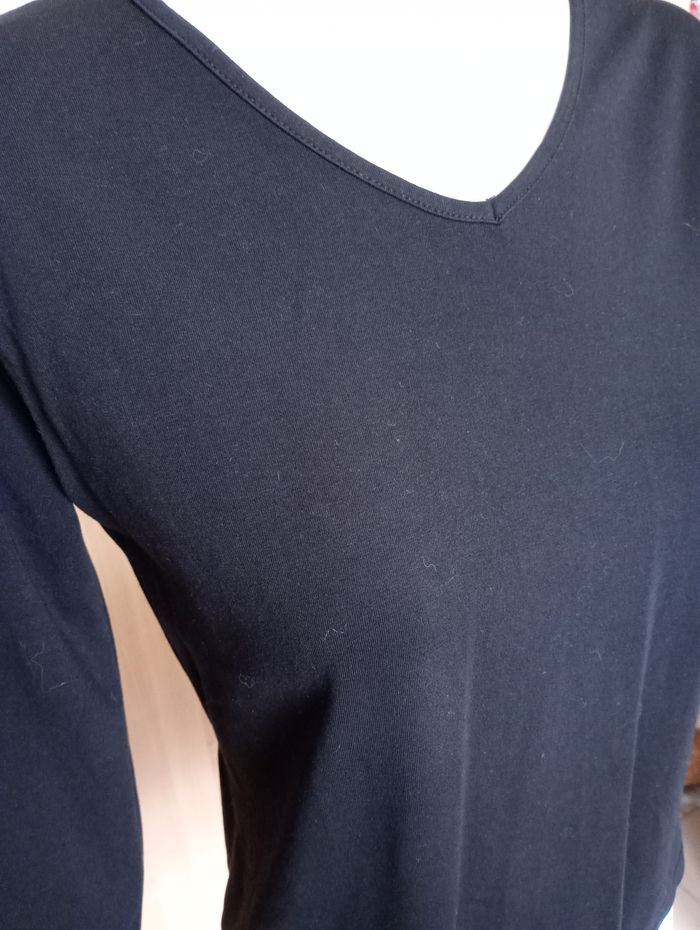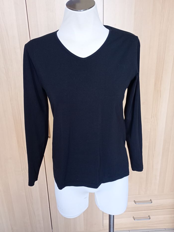 Blouse à longues manches, classique avec un col en V. Taille : 42/44. Marque : Tissaia. Longueur : 60 cm. Largeur entre aisselles : 44 cm. Longueur manches : 55 cm. Très bon état.