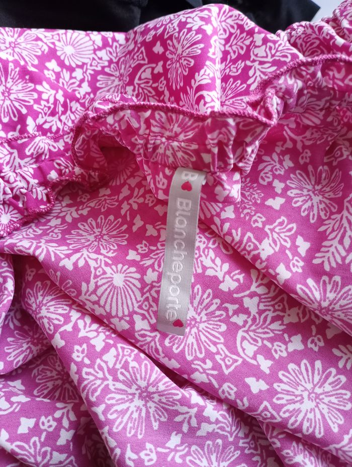 Tunique légère et agréable à porter. Rose vif avec petites fleurs blanches. Taille : 46/48. Marque : Blancheporte. Longueur : 81 cm. Largeur entre aisselles : 61 cm. Neuve sans étiquette