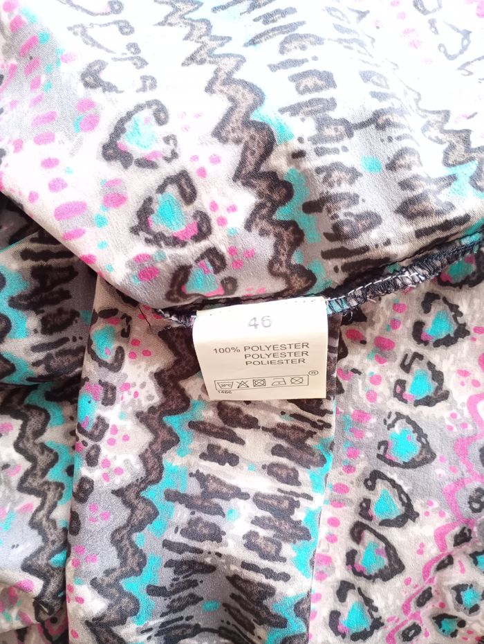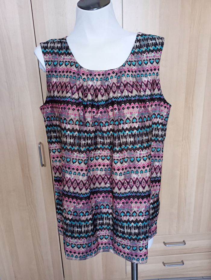 Débardeur fluide et léger. Taille : 46. Pas de marque. Longueur : 70 cm. Largeur entre aisselles : 53 cm. Très bon état.