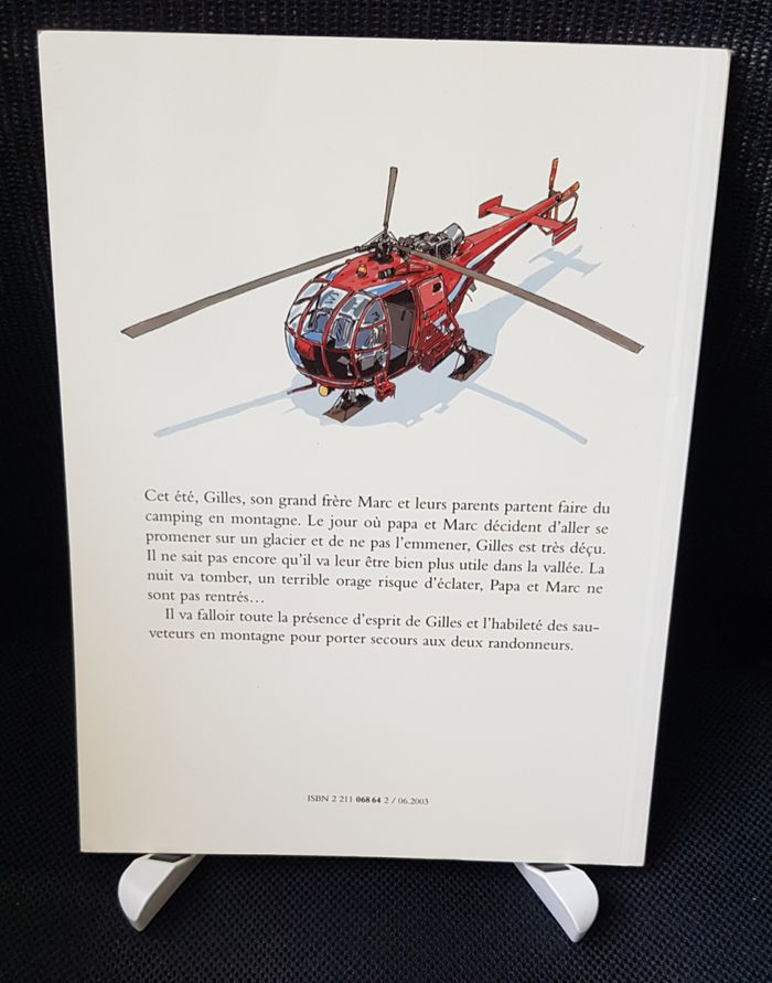Cet été, Gilles, son grand frère Marc et leurs parents partent faire du camping en montagne. Le jour où Papa et Marc décident d'aller se promener sur un glacier et de ne pas l'emmener, Gilles est très déçu. Il ne sait pas encore qu'il va leur être bien plus utile dans la vallée. La nuit va tomber, un terrible orage risque d'éclater, Papa et Marc ne sont pas rentrés... Il va falloir toute la présence d'esprit de Gilles et l'habileté des sauveteurs en montagne pour porter secours aux deux randonneurs. Collection Archimède. Édition souple Format 190x249 ISBN 2211068642 juin-03 Très Bon État sauf quelques légères pliures/marques sur couvertures, sans écritures. Une imposante liste de livres pour enfants disponible, essayez un premier contact :) Poids : 170 g