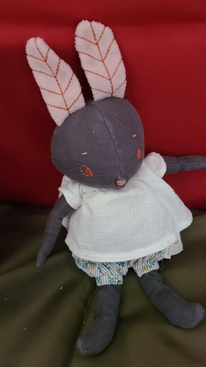 Doudou peluche lapin marron blanc fleurs Après la pluie Moulin Roty - photo numéro 1