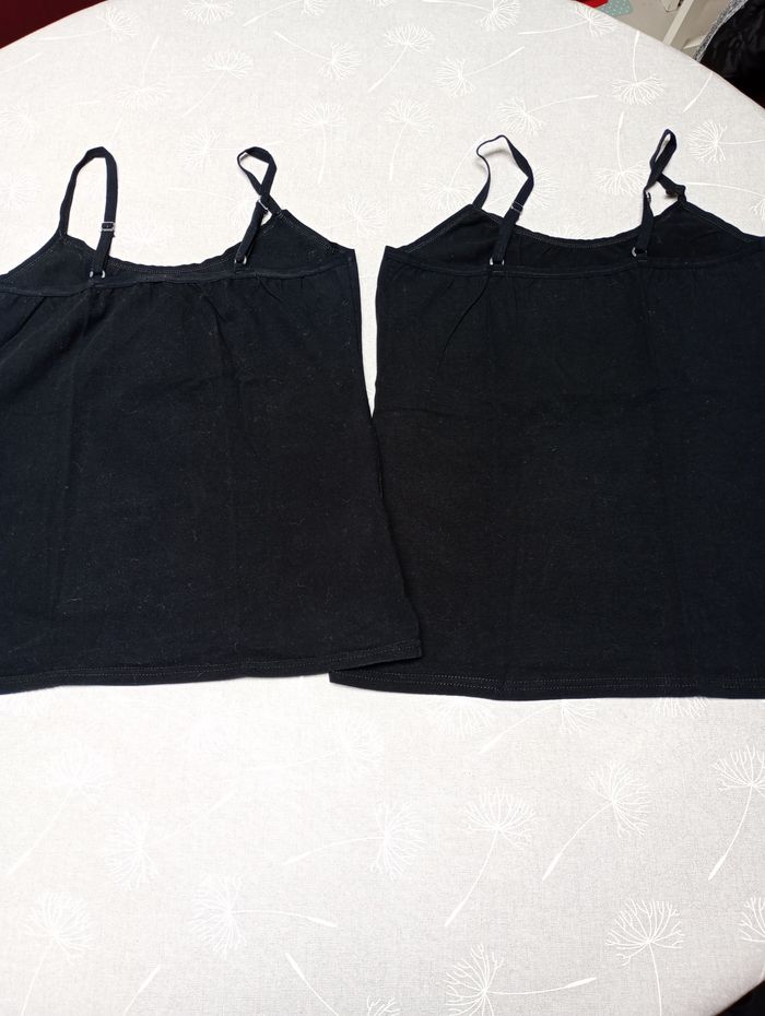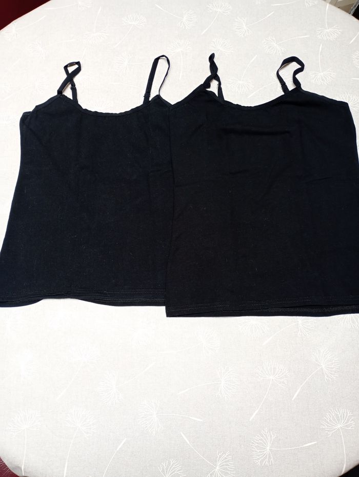 Lot de 2 débardeurs noirs à bretelles fines et réglables. Taille : XL. Marque Zeeman. Très bon état.