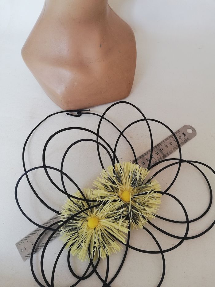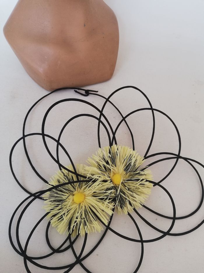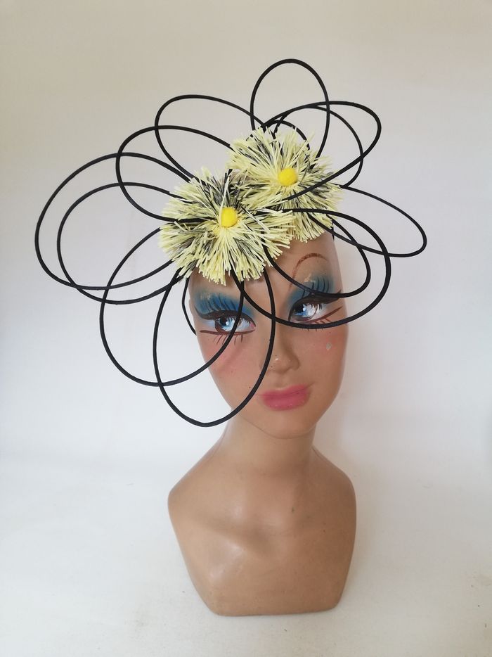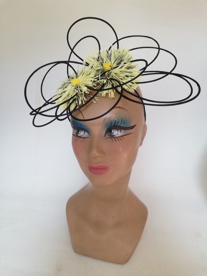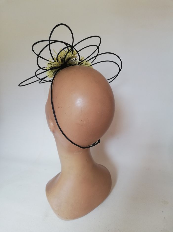 Petit chapeau femme mariage cérémonie noir jaune rétro serre-tête original - photo numéro 1