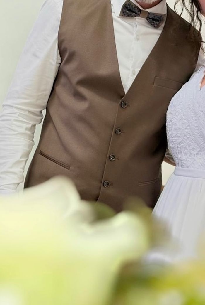Utilisé 1 fois le 8 mars pour notre mariage Sort du pressing Comme neuf Veste 50/52 Gilet M 50/42 Pantalon 42 Noeud papillon 1m70 Marque IZAC acheté en janvier Toute saison
