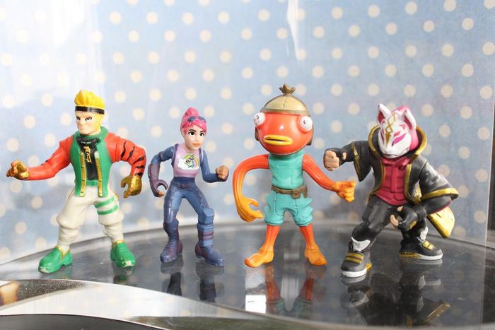Lot composé de 7 figurines, personnages du jeu fortnite Bras et têtes articulés. Environ 5 cm. Fabriquées par Moose sous licence Epic games. En bon état, il peut y avoir des manques de peinture. Sans socle et sans armes Réponds avec plaisir aux demandes d'informations complémentairre Réponse rapide envoi soigné dans les meilleurs délais