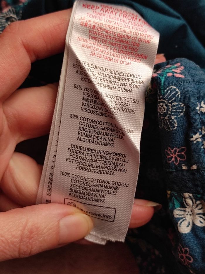 jolie blouse à manches longues en imprimé fleurie sur fond bleu. Attache à bouton à l'arrière ( certains ont été recousu ). Intérieur 100% coton. Extérieur 68% viscose & 32% coton. Marque sergent major en taille 6ans. En bon état