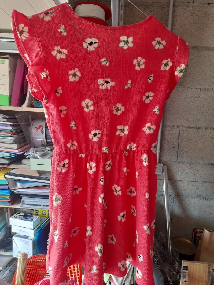 En très bon état cette jolie robe légère de chez kiabi est en 8ans.rouge avec motifs de fleurs blanches.sans manches.