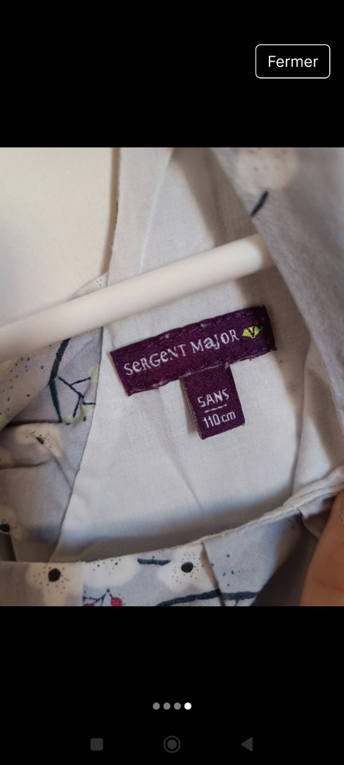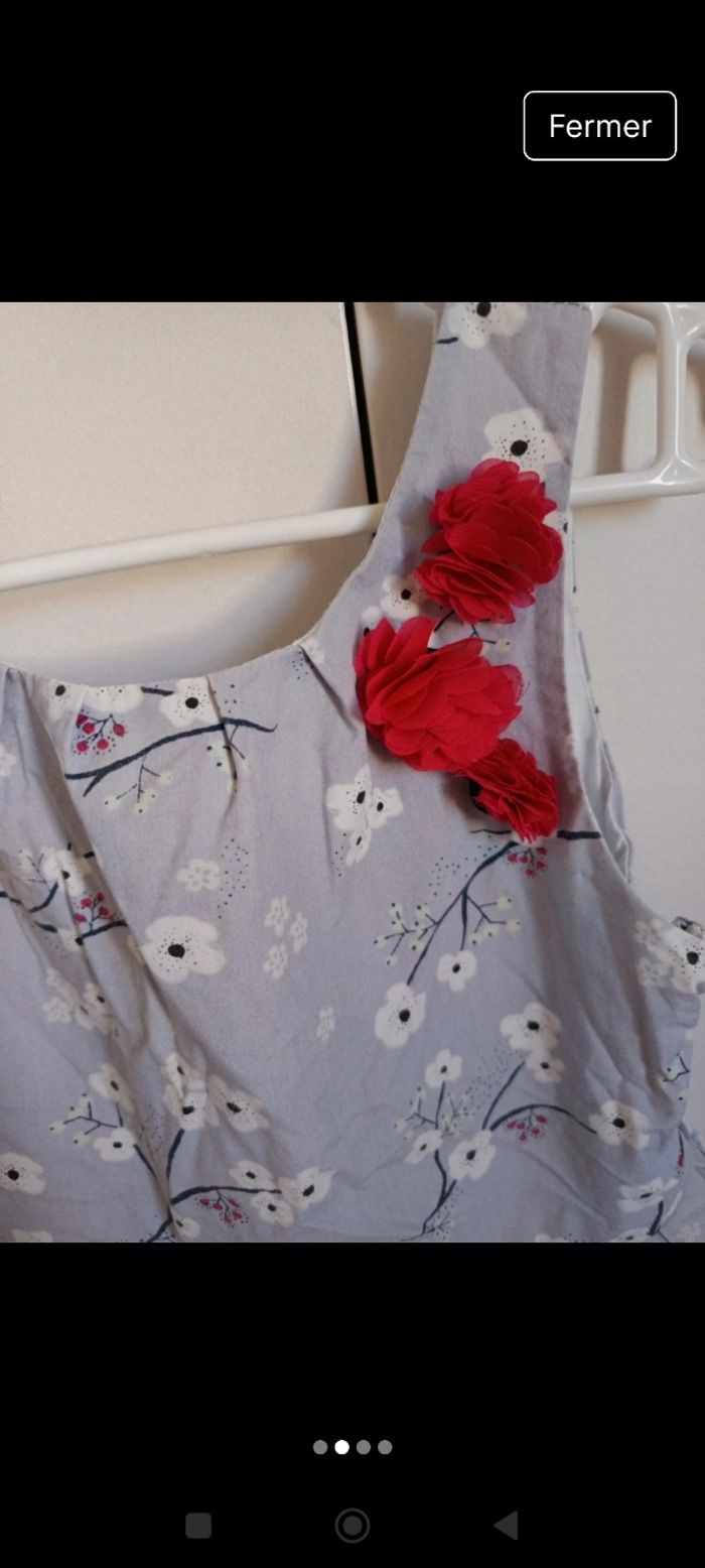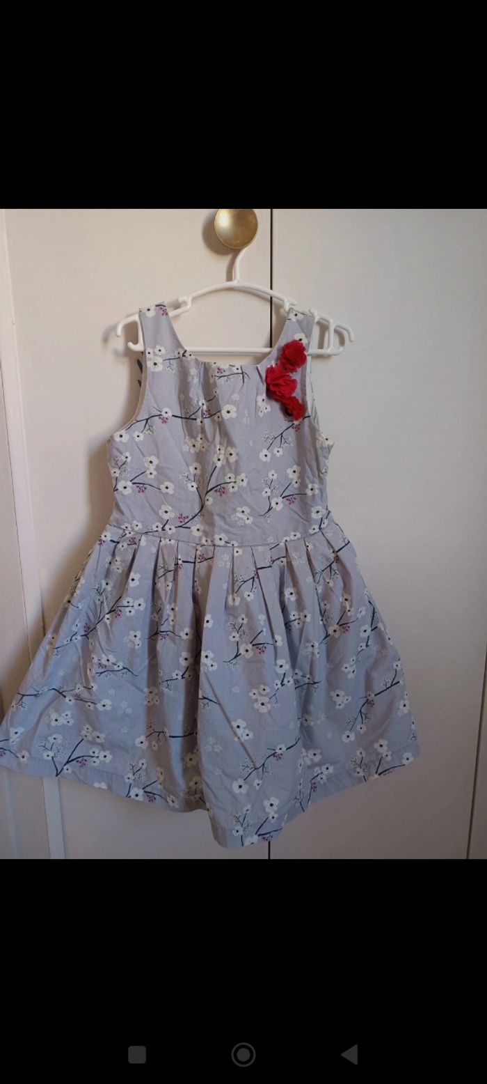 Jolie robe grise avec fleurs de cerisiers blanches et sur un côté des fleurs rouges. taille 5 ans Marque sergent major