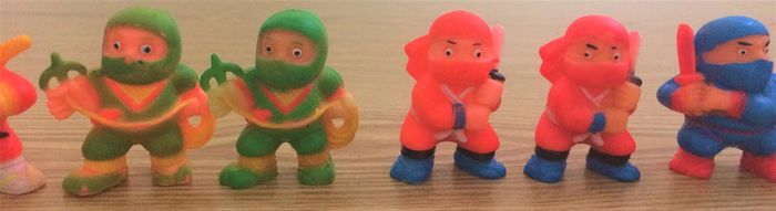 12 Figurines Ninja Soma en PVC Vintage 1986 Mesurent environ 4 cm Possibilité d'acheter en lot à 48 € ou à l'unité à 4 € En livraison ou remise en main propre sur Montpellier