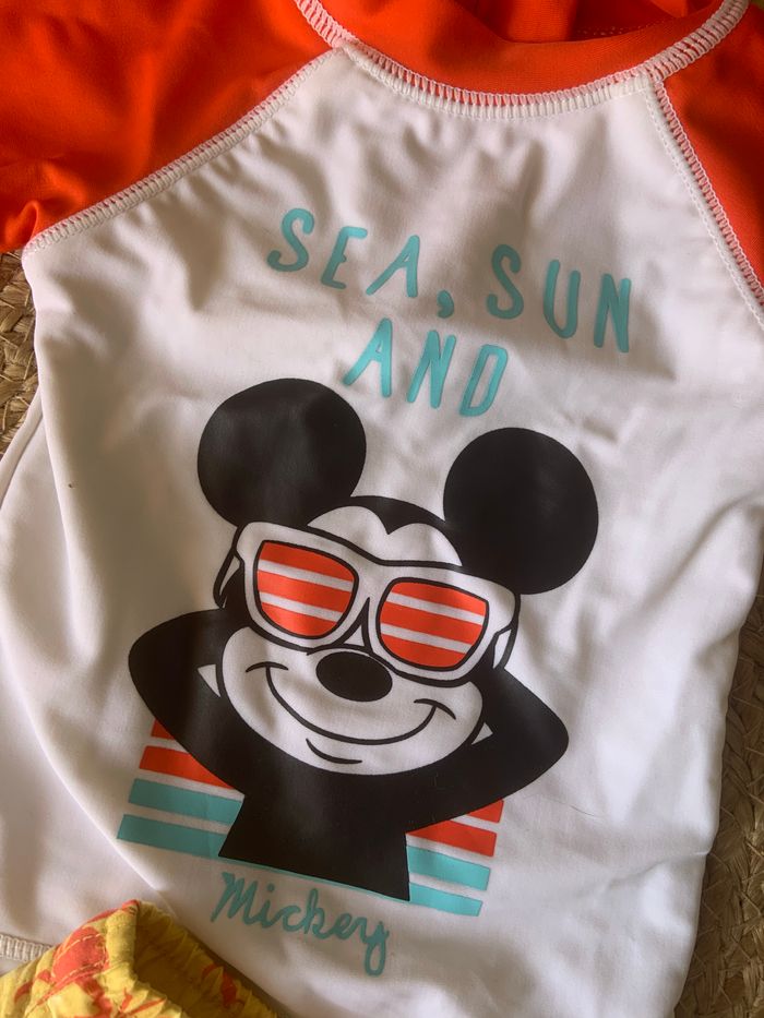 Ensemble de bain Taille 6 mois mais convient a partir de 3 mois sans pb En tbe Haut UV mickey Short de bain kiabi