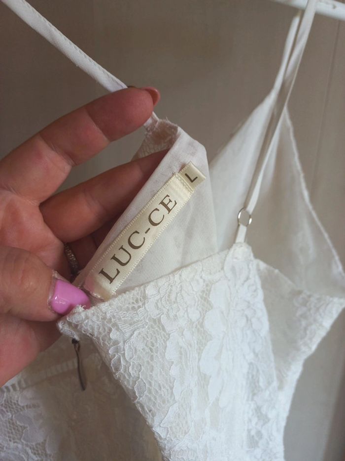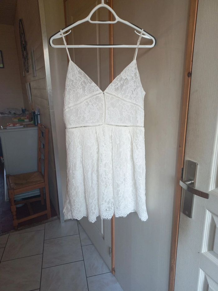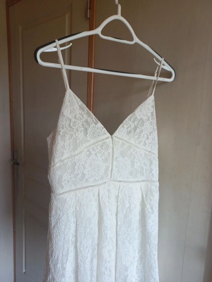 Robe blanche Dentelle Bretelles réglables Fermeture dans le dos Taille L
