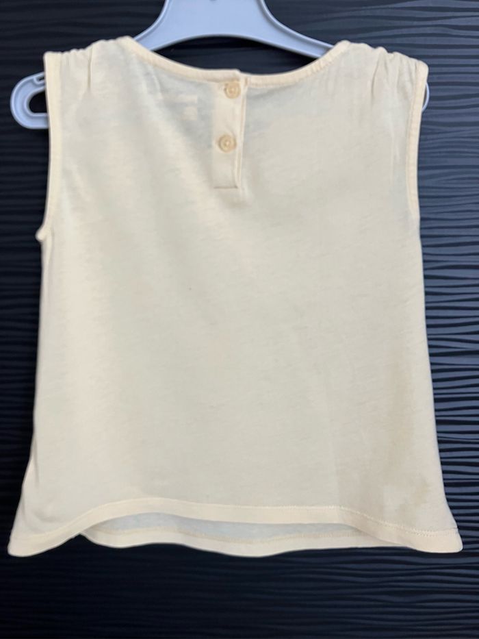 Débardeur jaune pale imprimé et brodé, avec 2 boutons derrière, 100% coton, de marque BabyGap, taille 3 ans Très bon état