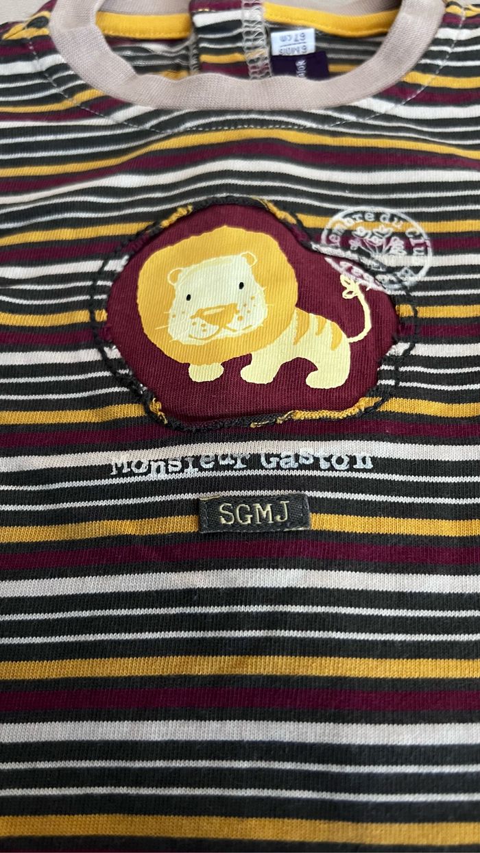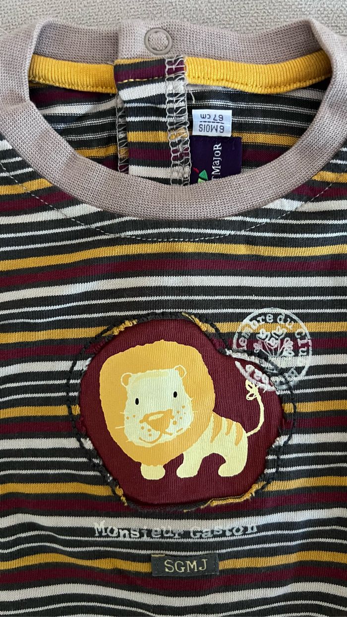 T-shirt Sergent Major 6 mois Imprimé lion sur le devant Boutons pression tout le long du dos Multicolore Maison non fumeur et sans animaux 📩Je réponds rapidement aux messages 📦Envoi rapide et soigné