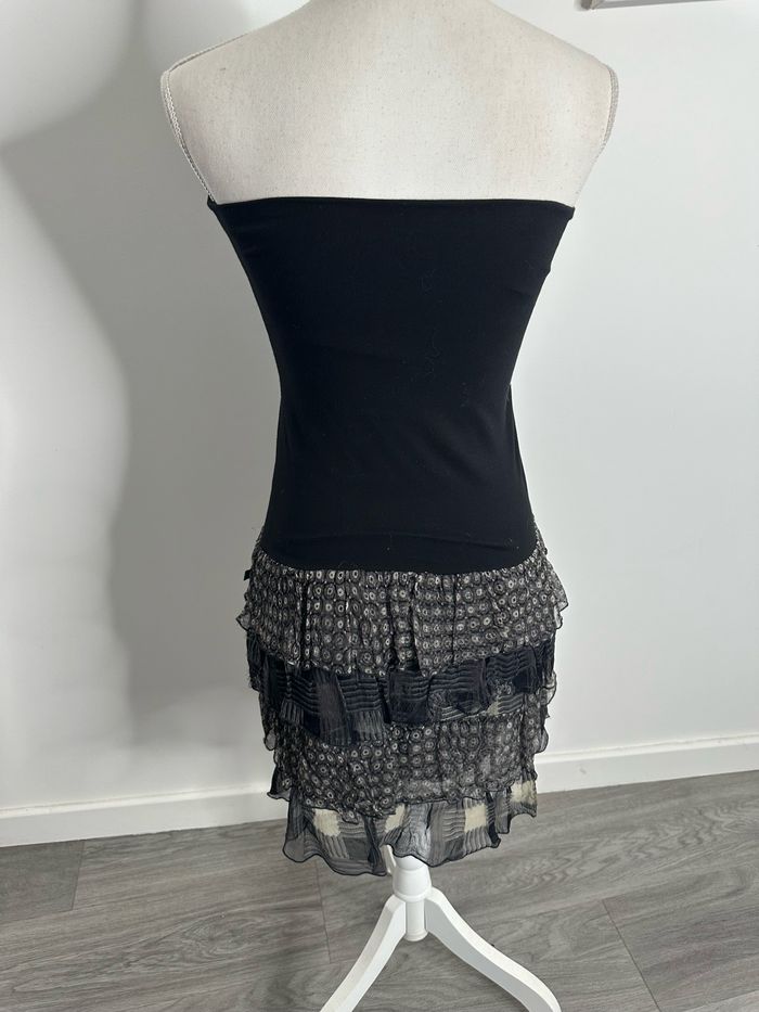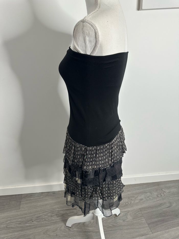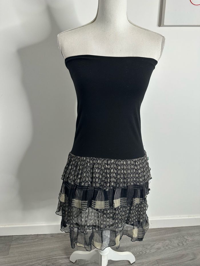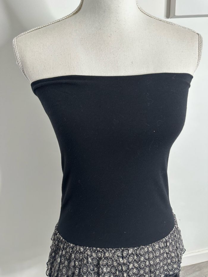 Robe bustier - Excellent état - Taille 38 équivalent M - Noire et beige - Tissus super stretch - Volants sur le bas - Coupe bustier - Pas d’étiquette de taille ni de matière Dimensions: - 36 à 48cm niveau aisselles - 72cm de long