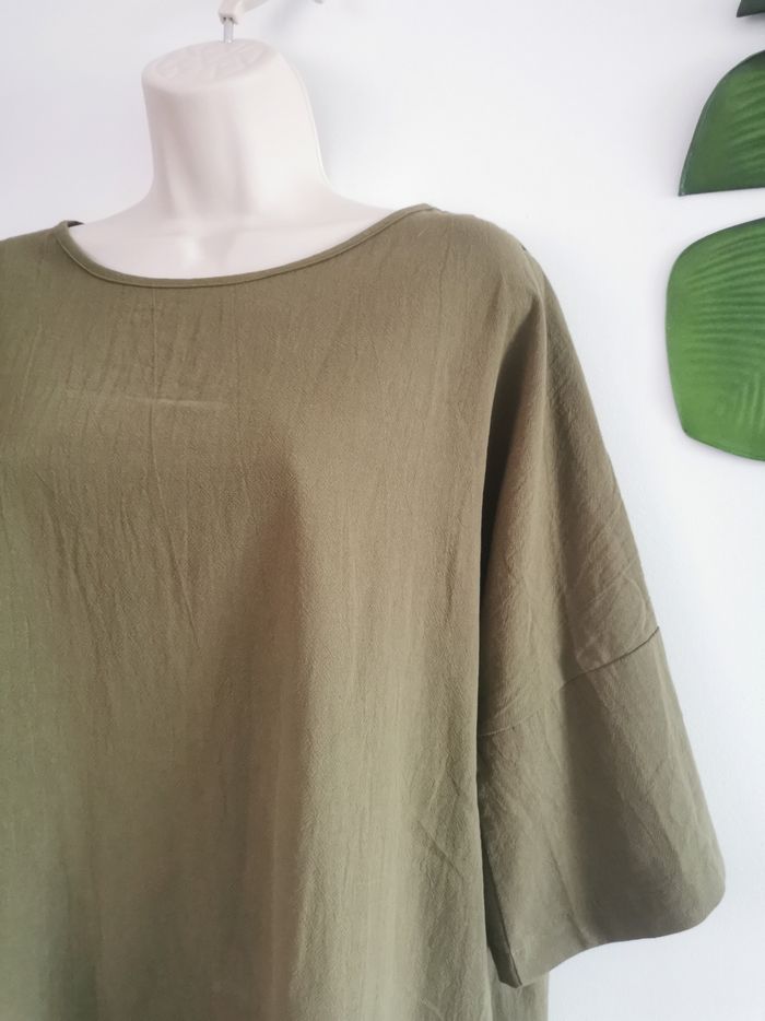 Blouse kaki manches 3/4 tissu texturé effet lin Taille XL - photo numéro 3