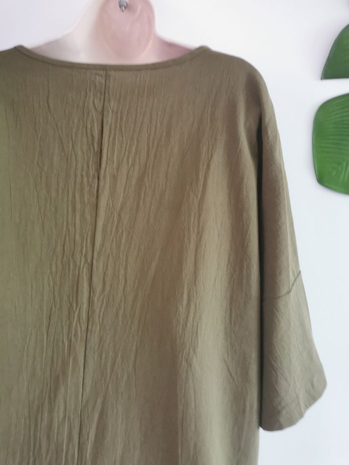 Blouse kaki manches 3/4 tissu texturé effet lin Taille XL - photo numéro 5