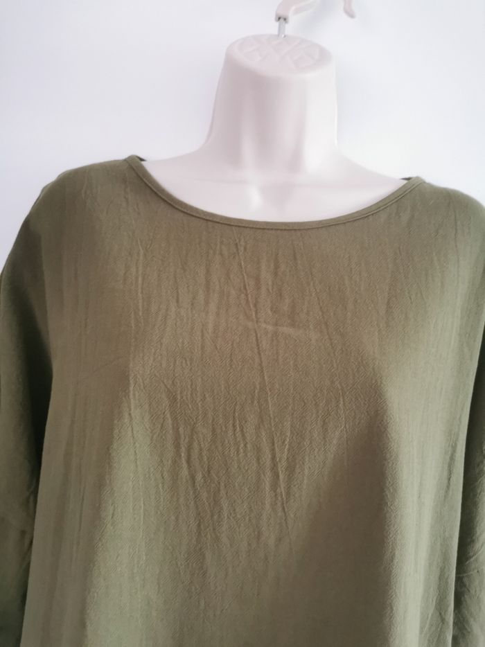 Blouse kaki manches 3/4 tissu texturé effet lin Taille XL - photo numéro 2