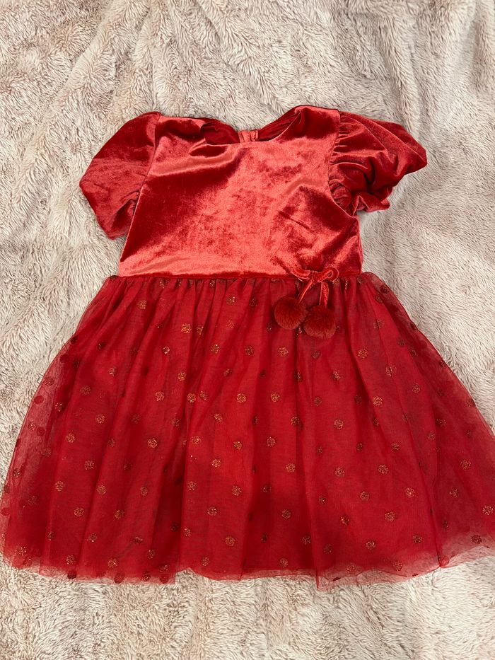Robe rouge velours et tulle 36 mois