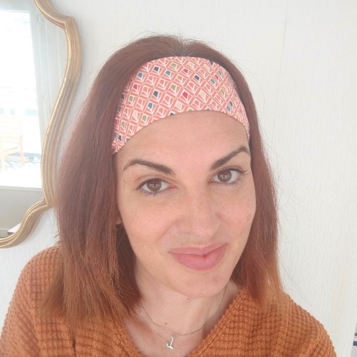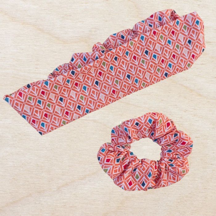 Bandeaux LescinqL "Le diamond" motif diamants sur fond orangé et touche de couleur bleu, rose, vert et blanc. Confectionné avec amour et délicatesse. Taille unique. Osez-vous offrir un accessoire LescinqL. https://lescinql.etsy.com