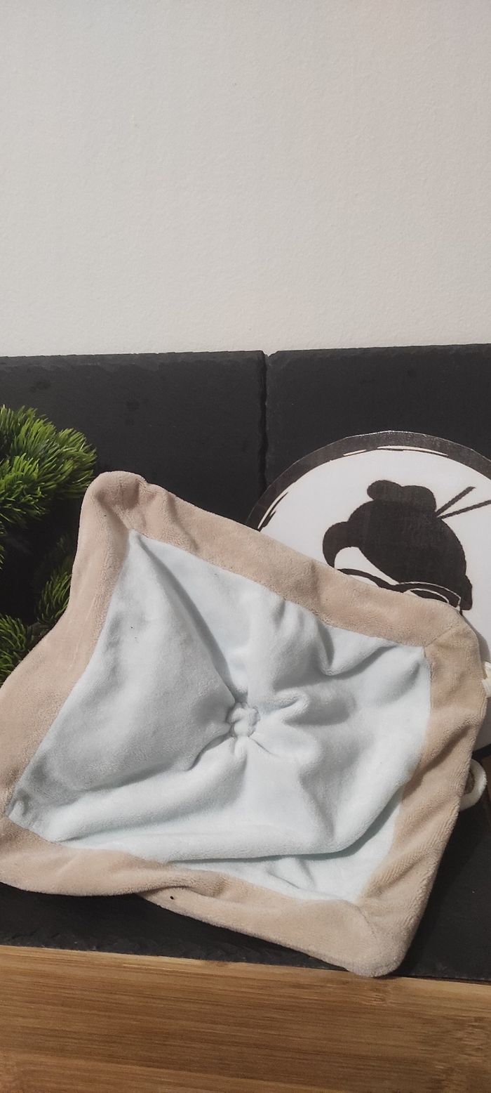 Nicotoy Doudou Lapin Bleu Cuddlesbleu brige marron roue écharpe carré plat - photo numéro 1