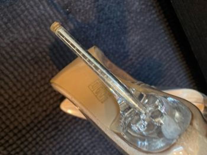Chaussures escarpins transparent portées une fois Petit morceau derrière en daim beige talons transparent 11 cm avec tige argentée Pointure 36 She&in