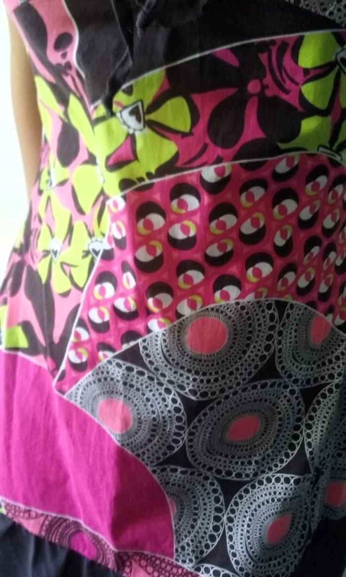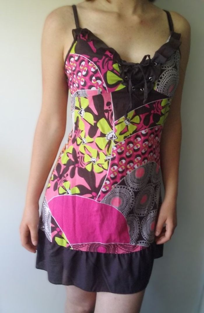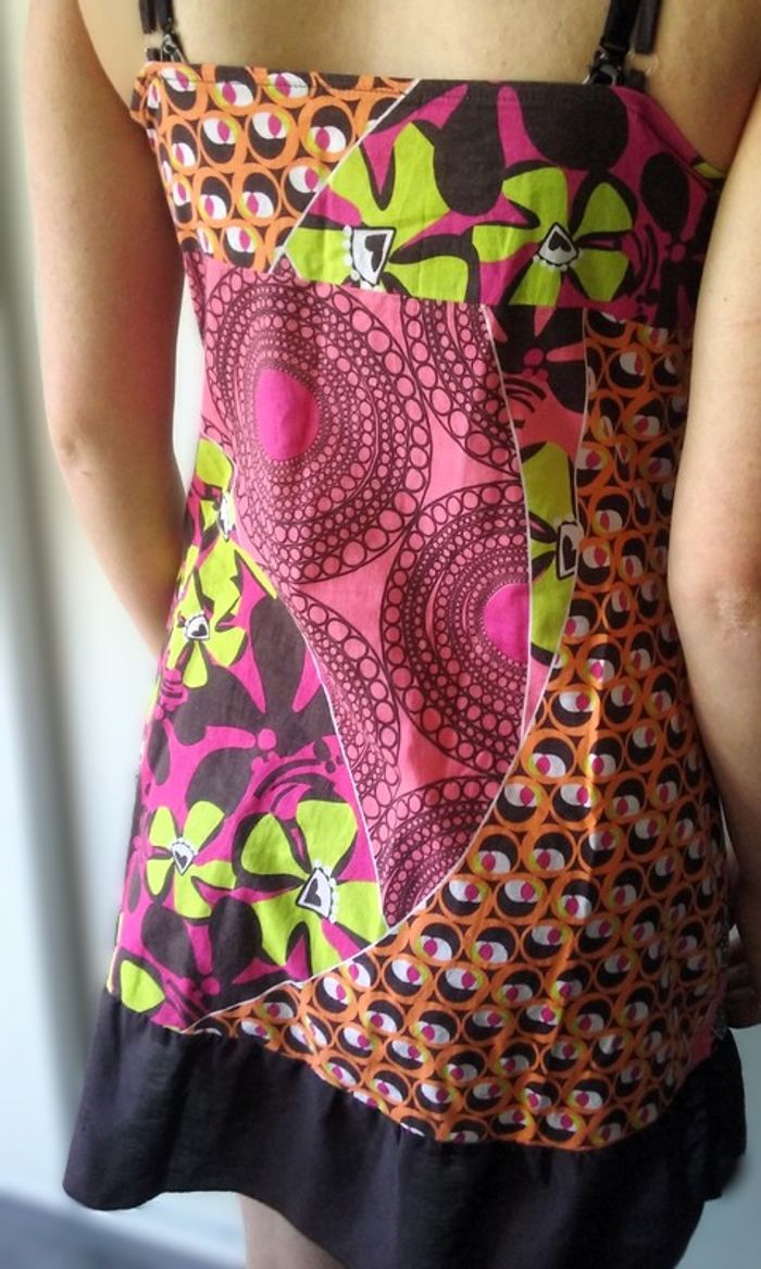 Petite robe d'été très fraîche et colorée, bretelles réglables, fermeture zippée sur le côté.