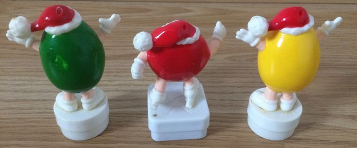 3 figurines M&M's bouchons de tubes de Noël Mr. Green, Red & Yellow Vintage début des années 1990 Possibilité d'acheter en lot ou à l'unité En livraison ou remise en main propre sur Montpellier