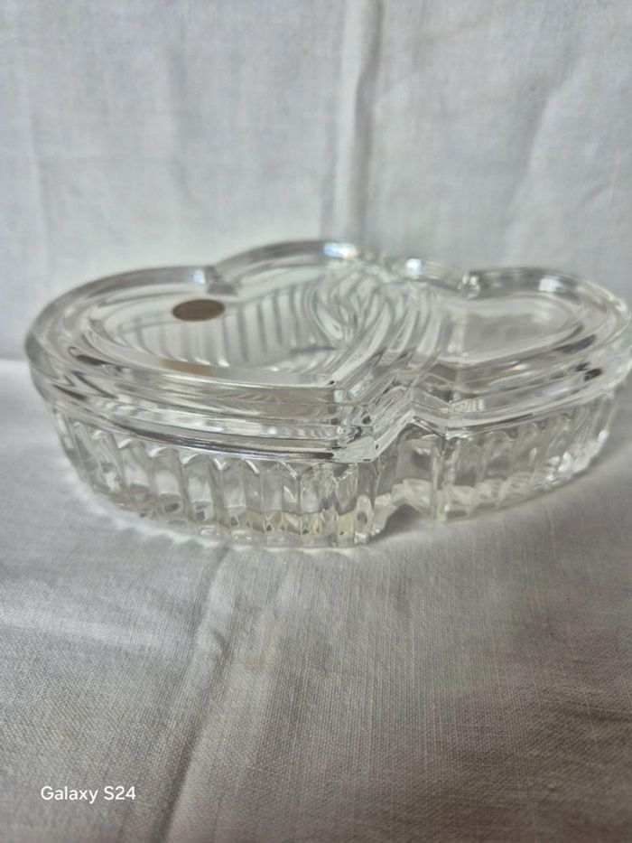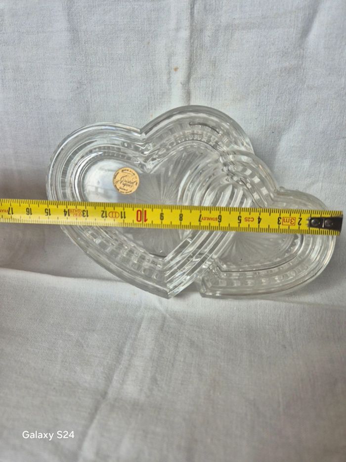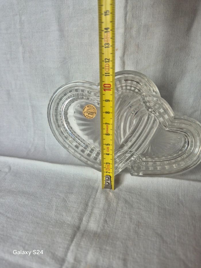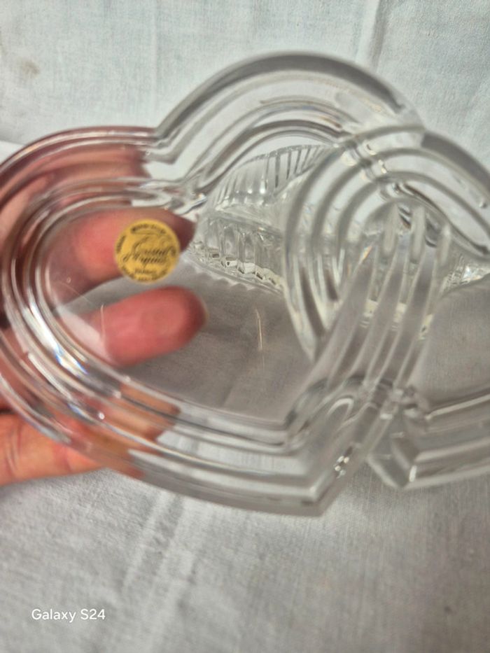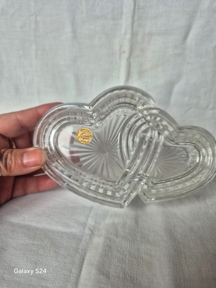 ⬇️mes autres annonces d'article de maison, décoration👉 #cg89déco une boite à bijoux avec 2 coeurs entrelacés. Elle est en cristal de la marque cristal d'arques elle mesure 15 cm x 10 cm de largeur très bon état #coeur #cadeau #boiteabijoux #decoration #fete #cristal #arques
