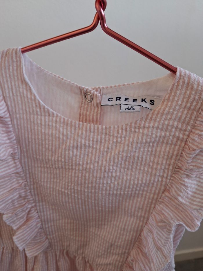 Robe d'été rose et blanche rayé, taille 12 mois. Très peu porter.cr33k
