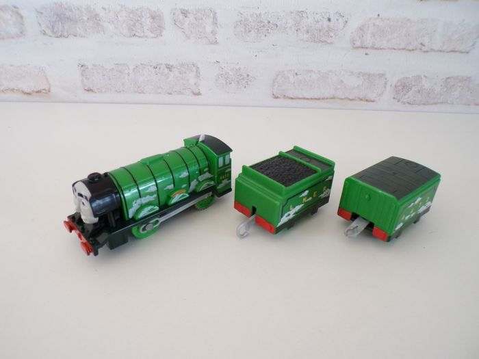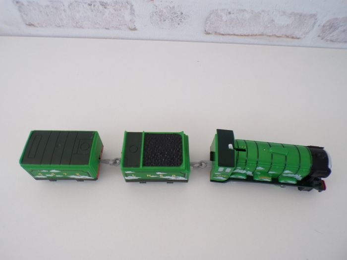 Locomotive - Train - Thomas et ses amis - Thomas and friends, Thomas & ses amis, tren, trenini, trein, zug. La locomotive s'appelle Ecossais volant, flying Scotsmann en très bon état, et fonctionne parfaitement, avec ses wagons en super bon état. L'ensemble vaut plus de 54€...