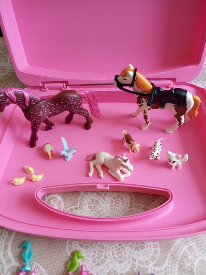 Petit Lot d'Animaux "Playmobil" dans valisette rose - photo numéro 2