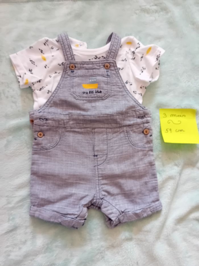 Ensemble salopette/t-shirt, taille 3 mois Bon etat