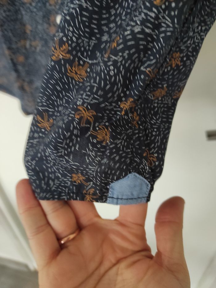 Chemisette à manches courtes Oxbow. Taille droite. Détails jean et motif palmiers.