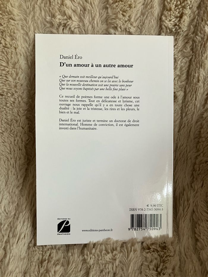 D’un amour à un autre amour de Daniel Éro ~ Dépôt légal: Septembre 2020 ~ Les Éditions du Panthéon 9€90 ~ Poésie: 49 pages ~ Vendu 1€ ~ Autres livres disponibles et % activé sur les lots ~ Envoi soigné.