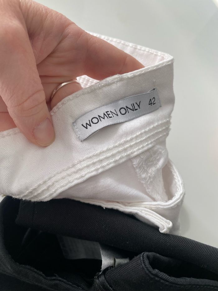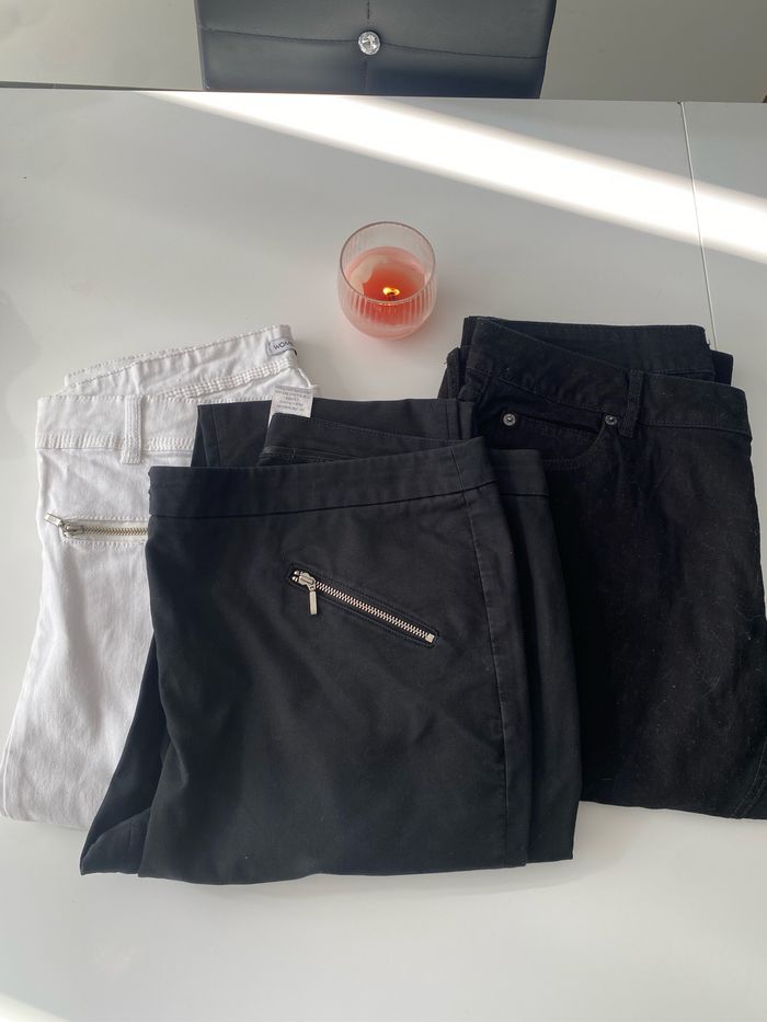 Lot de 3 pantalons, taille 42 . Le jean blanc et le jean noir de chez la Redoute sont neufs , jamais portés . Le pantalon 123 est en bon état mais il manque le bouton et le fermoir ( voir photo ). 25€ le lot