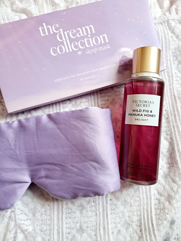 Lot de 2 articles neufs. 🌸 une Brume parfumée Victoria's Secret neuve Wild Fig & Manuka Honey. 🌸 un masque de nuit sommeil Rituals Dream Collection. Sleep mask Delight. Wild Fig victoria