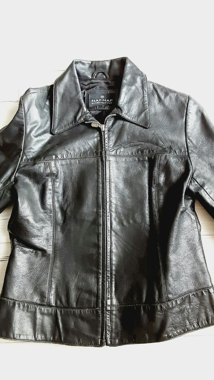 Vêtement femme veste blouson en cuir noir Naf Naf taille S - photo numéro 1