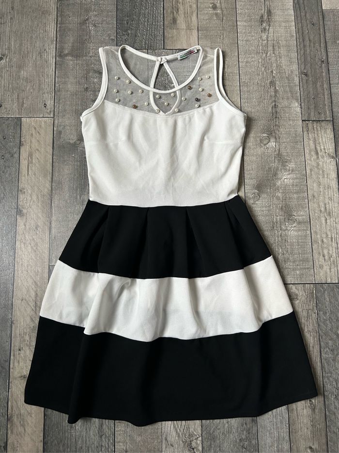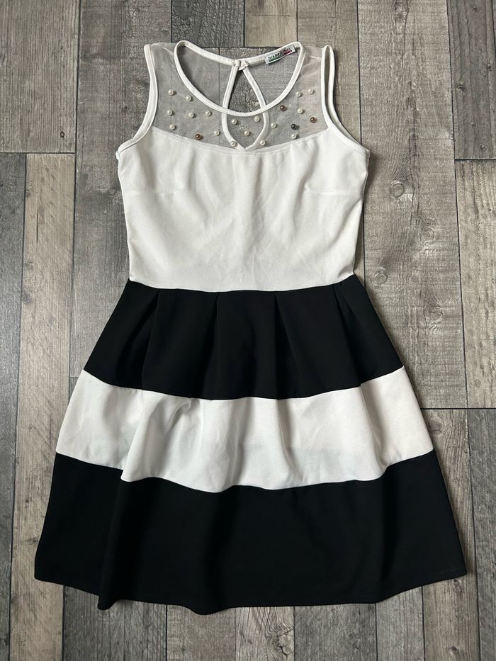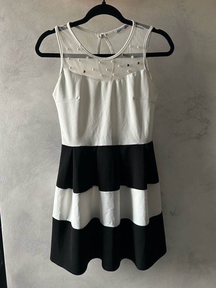 Robe à rayures noires et blanches avec fausses perles de coutures. Neuve Pas d’étiquette taille, correspond à un 34 ⚠️ Réductions sur les lots activées ! ⚠️ Envoi rapide et soigné 📦 #robeété #robe #robefemme #robeneuve #robe34 #robeelegante #robeàrayures #robenoireetblanche #robenoire #robeblanche #robearayureneuve #robearayurenoiretblanc