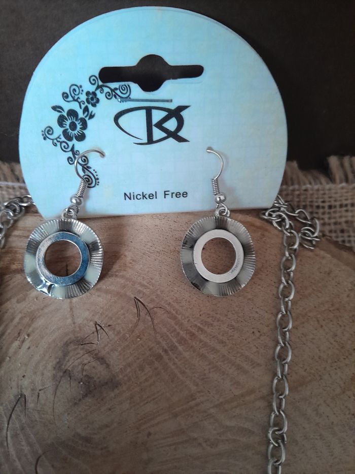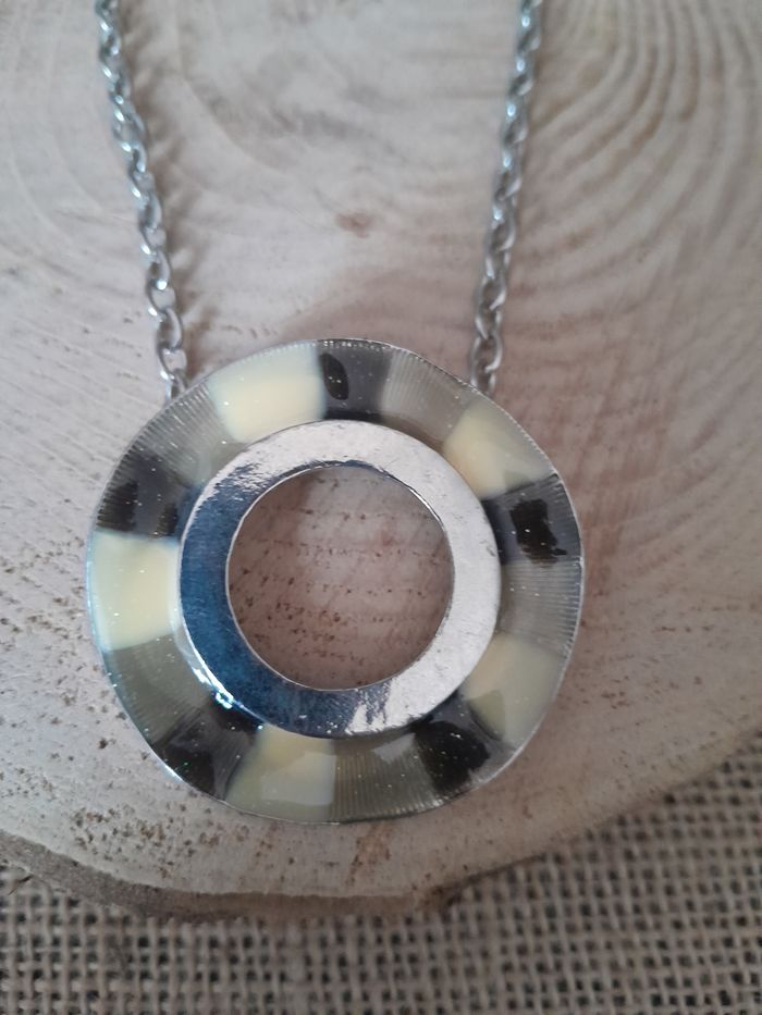 Parure collier boucle d'oreilles ronds noir gris crème - photo numéro 1