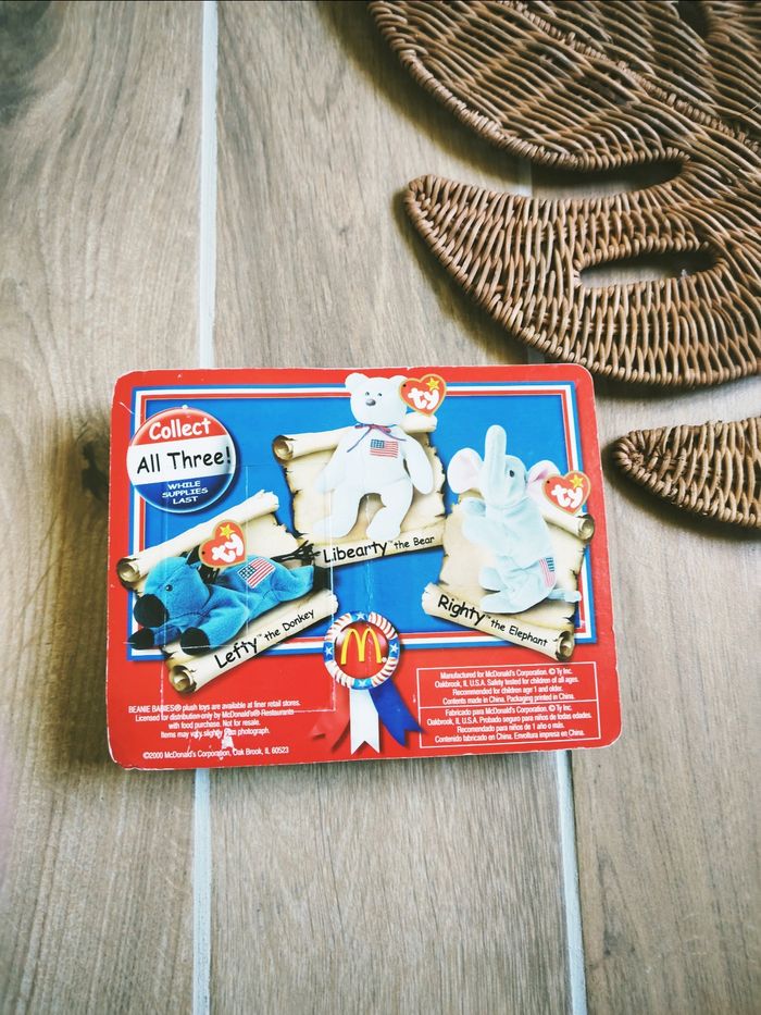 🐻Coffret peluche Ty teenie Beanie babies Righty the Elephant American trio année 2000 Mc Donald's vintage 🎀Coffret neuf jamais ouvert ❇️N'hésitez pas à créer un lot pour économiser sur les frais de port❇️ Jouet vintage, Jouet ancien, Jouet année 80, Jouet 90, peluche vintage, Peluche ancienne, happy meal, doudou,mac Donald, Mc Donald's