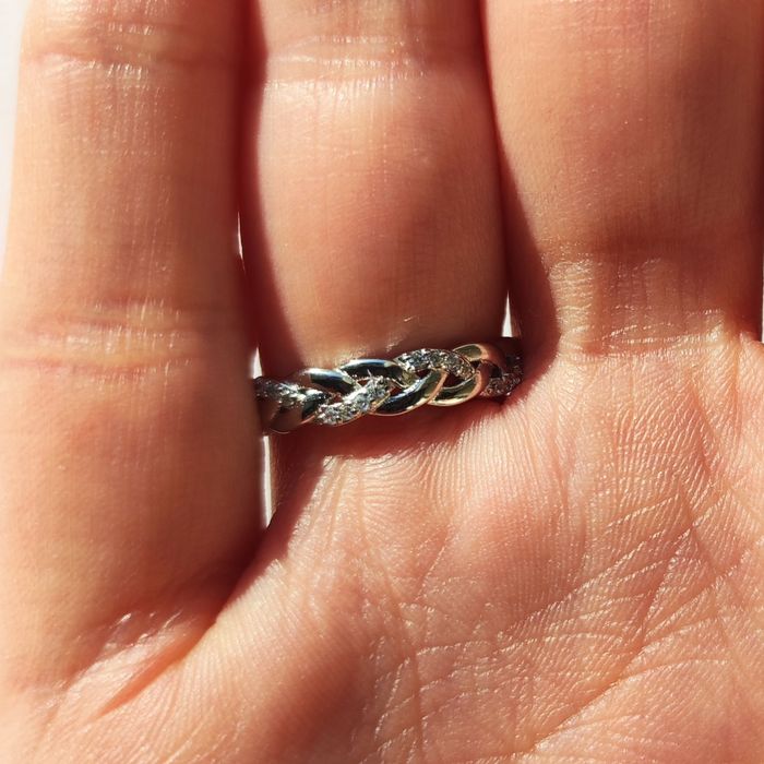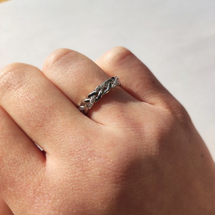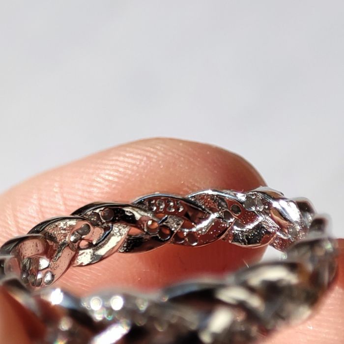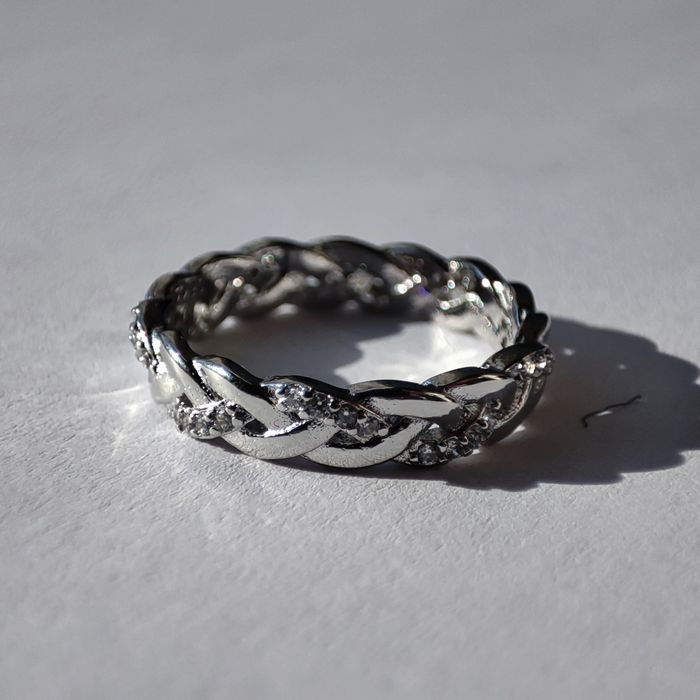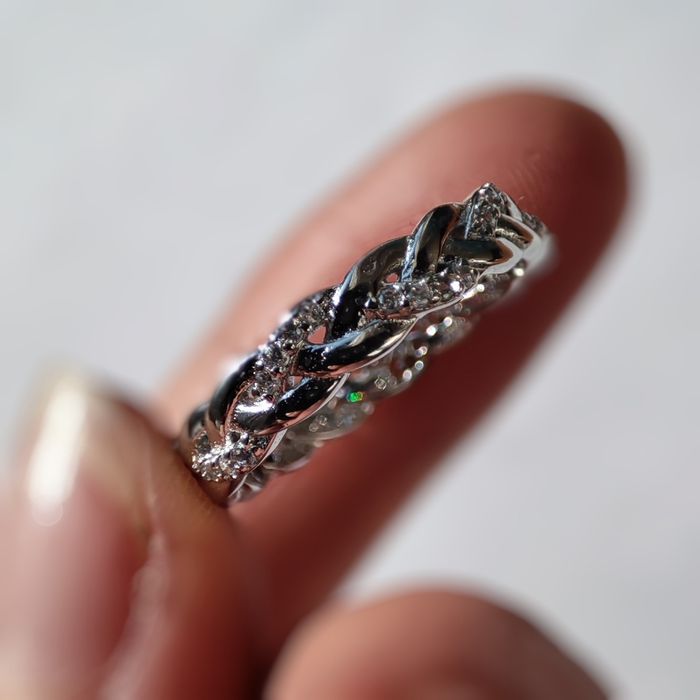 💍Bague tressée en argent sterling 925 ornée d'oxyde de zircons et poinçonnée. 💲Prix négociable. 📏Taille 52 💬N'hésitez pas à me contacter pour plus d'informations.